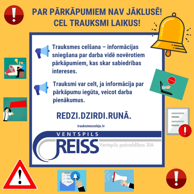 Lai stiprinātu trauksmes cēlēju aizsardzību un veicinātu trauksmes celšanu sabiedrības interesēs par dažādiem pārkāpumiem, 2019. gada 30. maijā apstiprināti pašvaldības SIA “Ventspils reiss” iekšējā trauksmes celšanas sistēma (stājas spēkā 2019. gada 1. jūnijā).